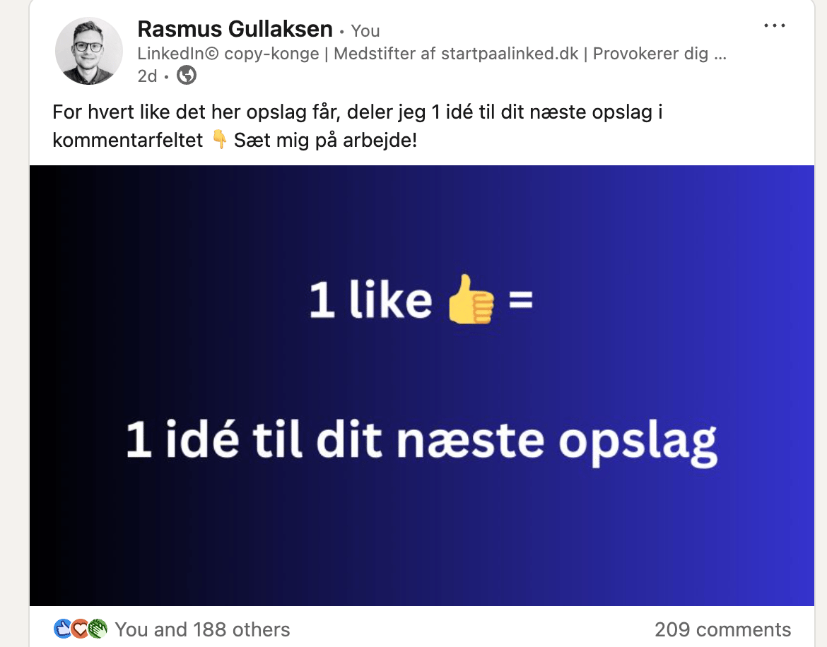 (Du bliver samtidig tilmeldt mit nyhedsbrev, Refleksioner fra feedet, hvor jeg deler mine ufiltrerede tanker om min LinkedIn-indsats med ca. 500 læsere. Keder det dig? Så afmeld for fa’en, det sgu okay).