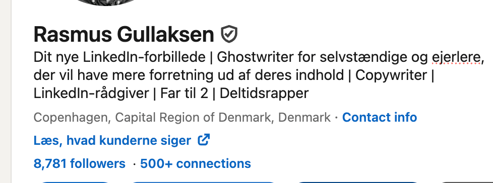 Historisk set har jeg altid anbefalet folk at give mere kontekst i deres headline, netop fordi den fylder meget på selve profilen og derved har en stor rolle i forklare besøgende, hvad du laver.